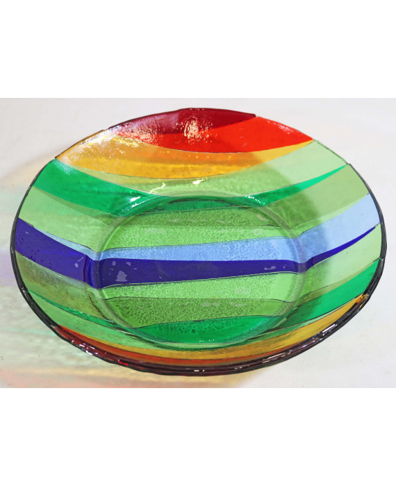 Piatto centrotavola in vetro policromo, creazioni Lapigia, design Paolo D'Orazio per SO.VET. Alessano. diam. cm37