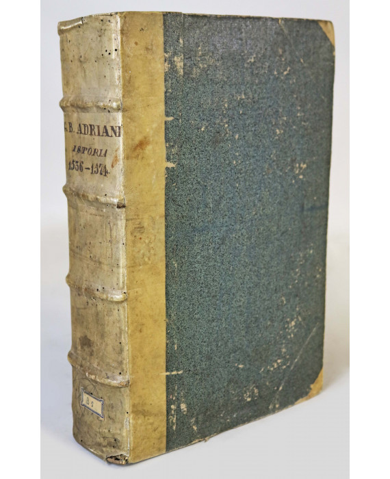 Giovanbattista Adriani. Istoria de' suoi tempi. Firenze. Stamperia de i Giunti. 1583. Volume con legatura in mezza pergamena. (alcune notazioni d'epoca a margine, macchie di inchiostro e di umidità, bruniture) Rarissima edizione originale, postuma, procurata da Marcello Adriani, figlio dell’autore, che la dedicò a Francesco de’ Medici, secondo Granduca di Toscana. L’opera, che abbraccia il periodo storico dal 1536 al 1574, mirava essenzialmente ad inserire la storia del Granducato Toscano nel più ampio contesto degli avvenimenti dell’Europa, mediante la consultazione diretta di carte di cancelleria e relazioni di ambasciatori.