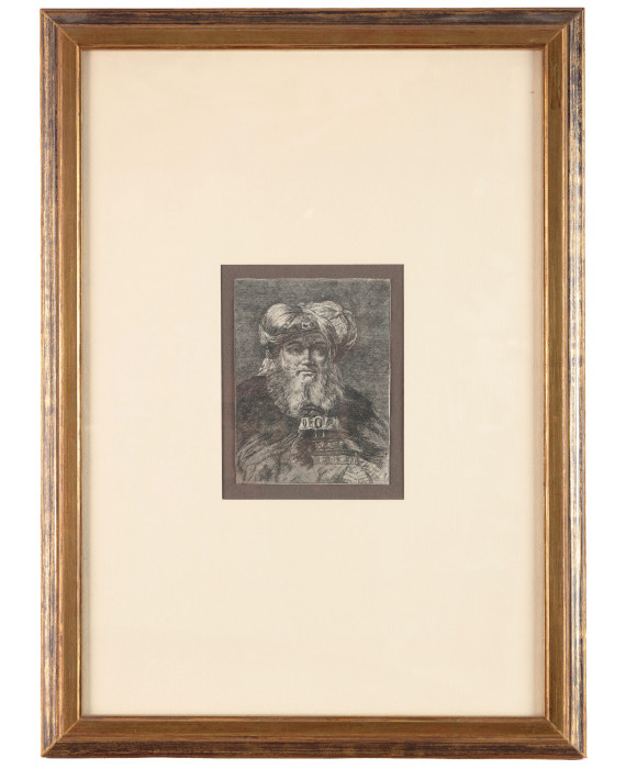 Testa di vecchio, con cornice. Allegato certificato di garanzia dell'Antiquario Librario Marsilio da Padova e la Galleria 1+1 descrivendo le seguenti caratteristiche: tecnica ad acquaforte. I stato. D.V.140; R.184. Bibliografia: De Vesme "Le peintre-graveur italien" 1906; Rizzi "L'opera di Tiepolo - le Acqueforti", 1971