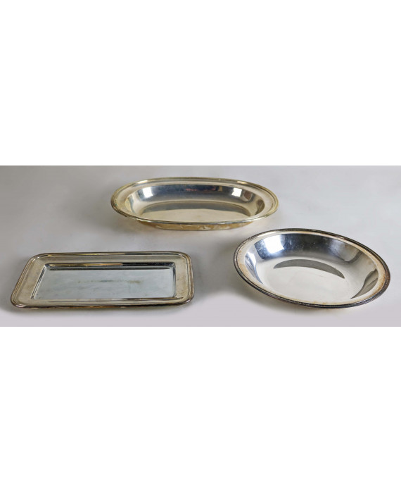 Lotto di tre vassoi in argento 800 a corpo liscio. Peso tot. gr. 1900