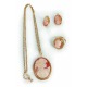 Parure in oro giallo 18Kt con cammei intagliati con profili, composta da una collana, un anello ed un paio di orecchini. Peso tot. gr. 26,6. Misura anello 21. Allegata dichiarazione di autenticità a cura della gioielleria Ci&Ci